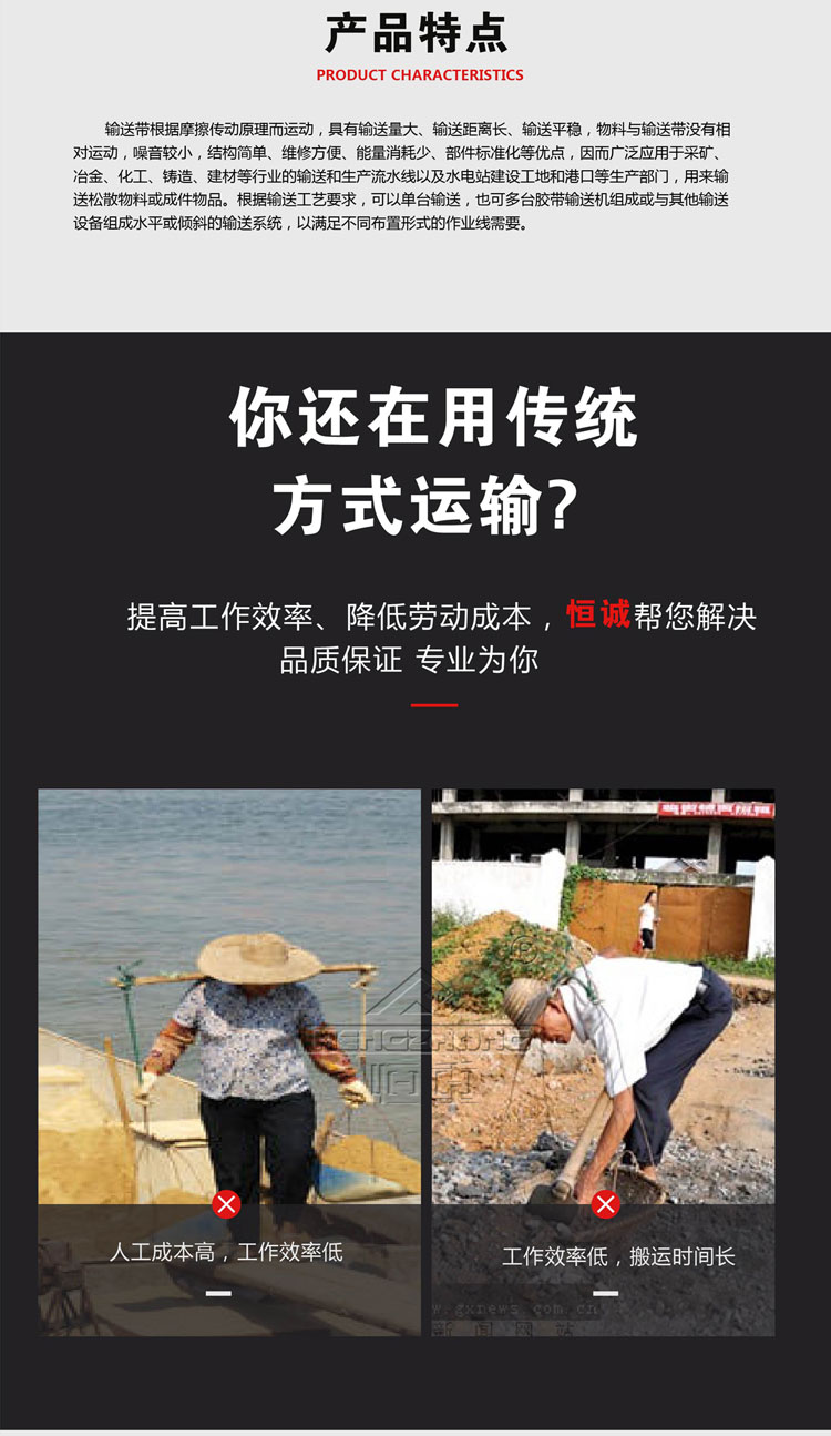 皮带输送机能够经济而有效地输送各种物料,皮带输送机可在环境温度-20℃至+40℃范围内使用,输送物料的温度在50℃以下。在工业生产中,皮带输送机可用作生产机械设备之间构成连续生产的纽带,以实现生产环节的连续性和自动化,提高生产率和减轻劳动强度。